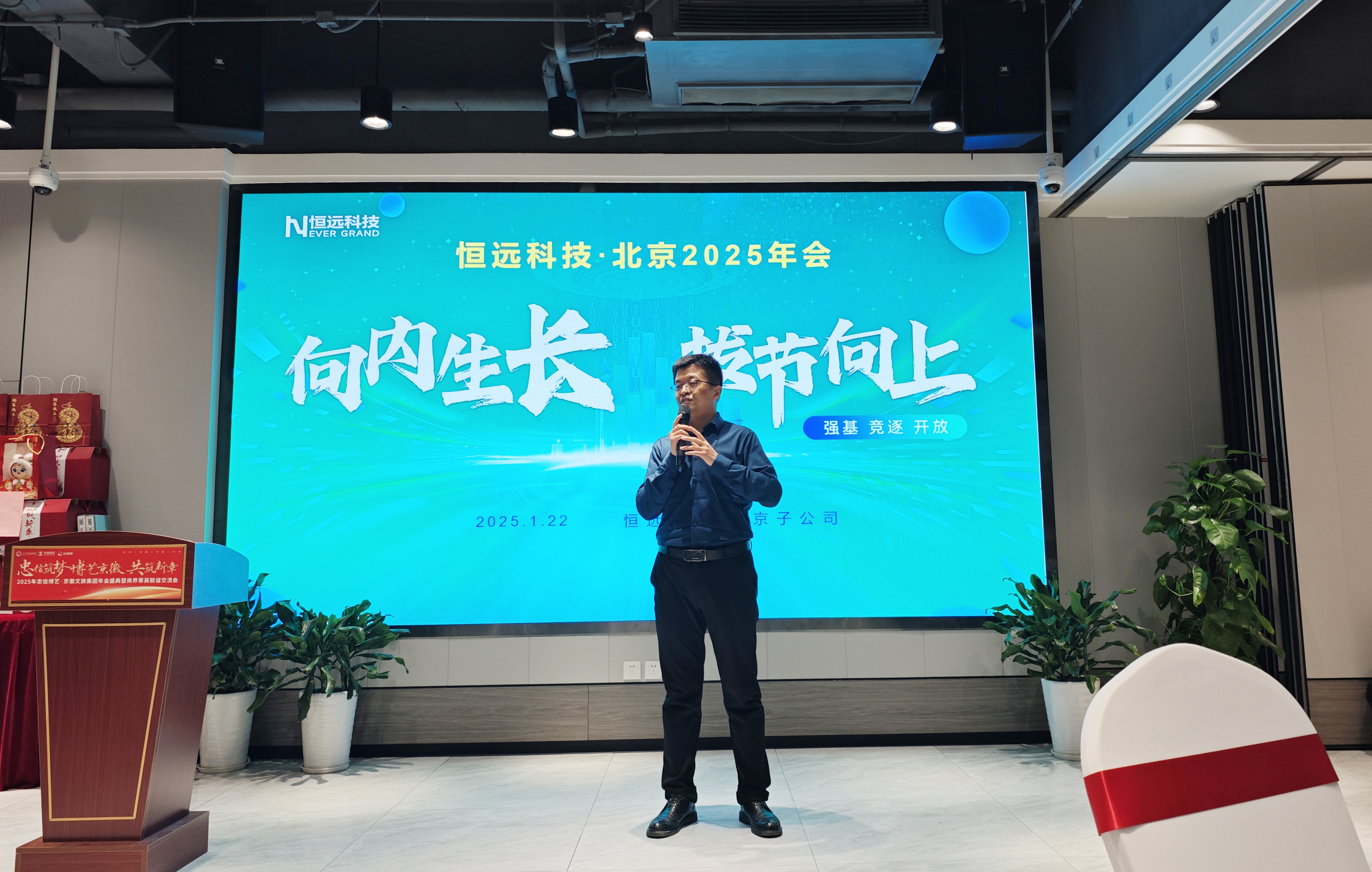 隨后,恒遠科技副總裁趙一科致辭,衷心感謝北京同事們的辛勤付出與默默奉獻。北京子公司三周年之際,趙總回顧了公司從煙臺啟航,到北京深耕,直至現今的蓬勃發展。他著重指出,2025年是恒遠科技的新起點,北京將擔當戰略資源整合的關鍵角色。趙總勉勵北京團隊,緊隨公司戰略步伐,明晰個人定位,共筑個人與公司的雙贏未來。