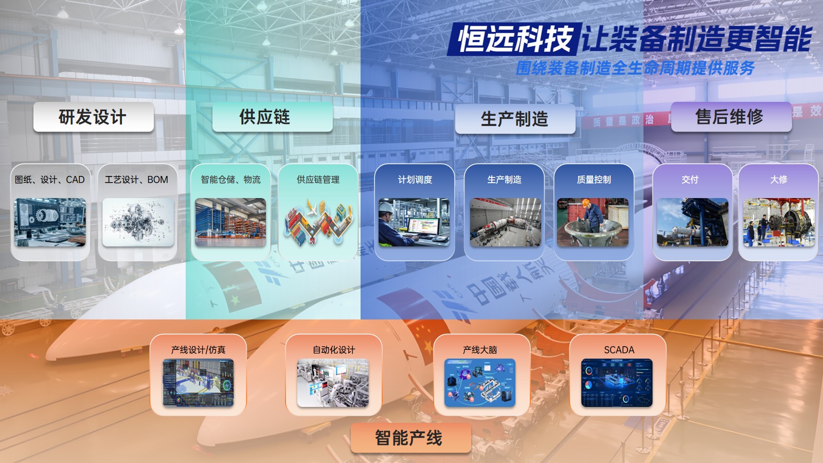 基于智能制造核心能力,恒遠科技橫向延伸打造裝備全生命周期總集服務,構建產業鏈數字化協同平臺與覆蓋設備大修維護的全維運維保障體系,形成貫穿研發設計、供應鏈協同、生產制造到售后維修的完整價值鏈。目前已為航天裝備、兵器裝備、能源裝備、礦業裝備等行業的數百家龍頭企業提供工業數智化整體解決方案與服務。