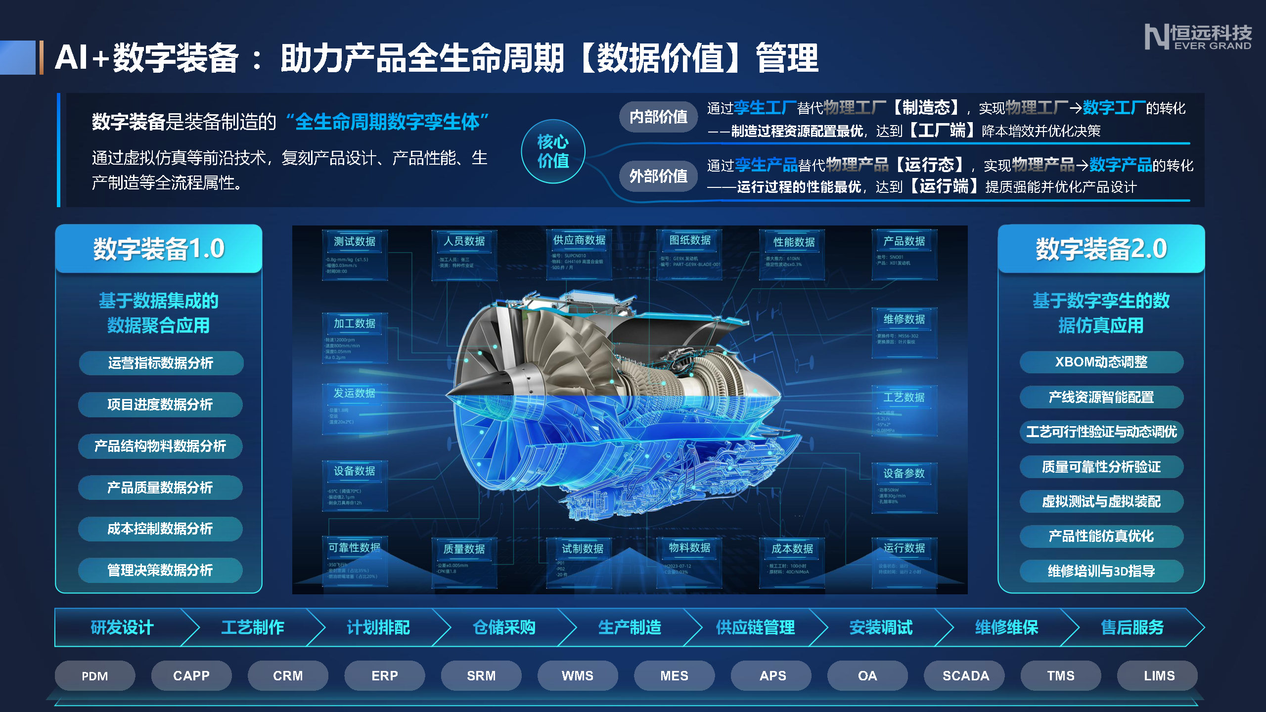 在能力布局方面,恒遠科技構建了貫通OT與IT數據的智能底座,有效破解工業數據割裂與治理難題。以此為基礎,不僅實現了“產線大腦”對制造流程的柔性控制,更通過“數字裝備”體系管理產品全生命周期價值。這一系列能力共同構成一個可生長的智能制造生態系統,支撐AI在設備管理、供應鏈協同、運維服務等多維場景中靈活應用,助力企業實現從生產到運營的全面效能提升。