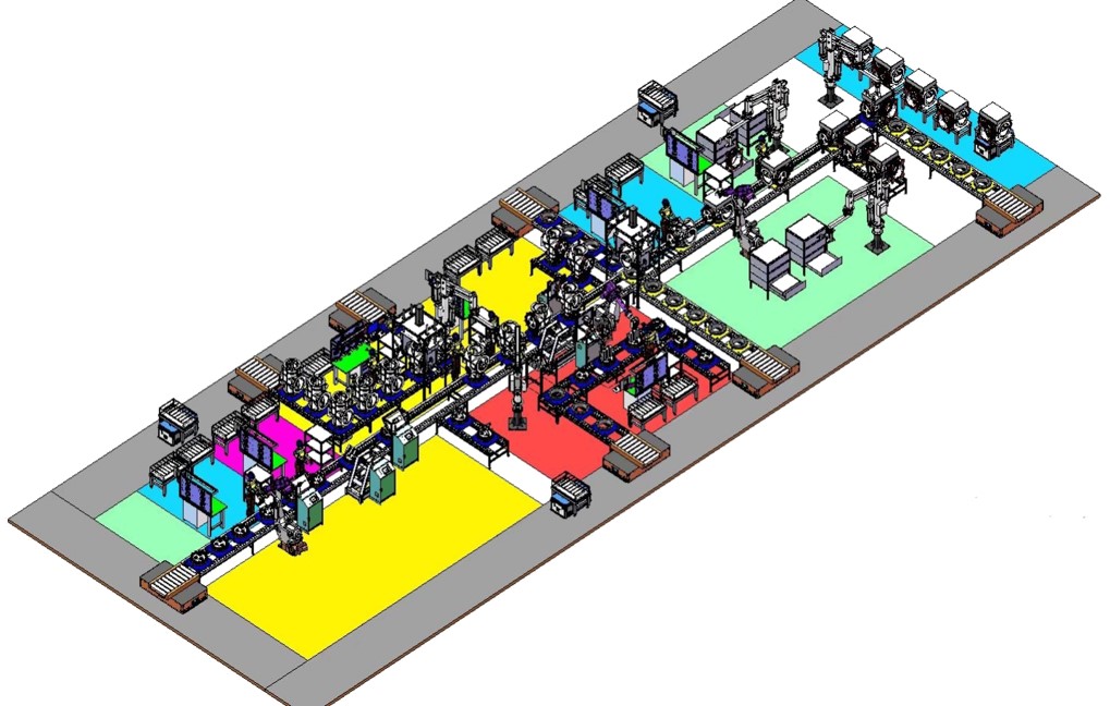 1)智能產線共14個工位,其中8個工位為自動化工位,集成自動裝配,自動檢測、自動磨合、大件殼體自動上下線等先進設備,有效降低人工作業強度,提高裝配效率; 2)智能產線集成智能物流AGV系統、生產線MES系統,實現上料,組裝,測試,物流等關鍵工序的自動化及追溯可控的智能化。